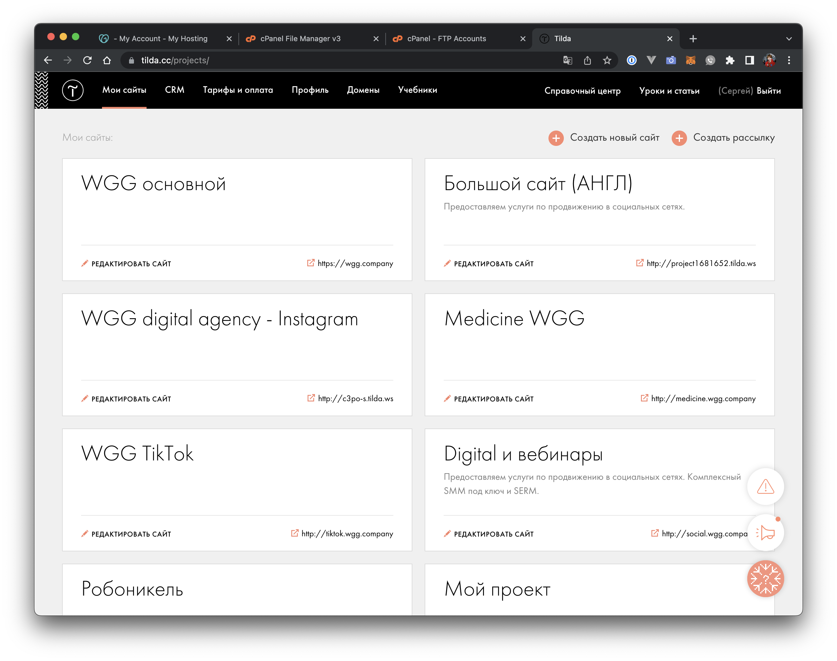Как перенести сайт на другой аккаунт Tilda